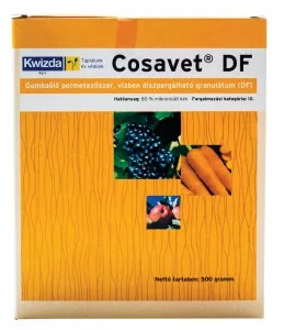 Priprema radne otopine: Napuniti spremnik prskalice do 1/3 vodom, zatim uz stalno miješanje dodati potrebnu količinu Cosavet® DF! Nakon toga doliti preostalu količinu vode! Na kraju radova temeljito isprati prskalicu!