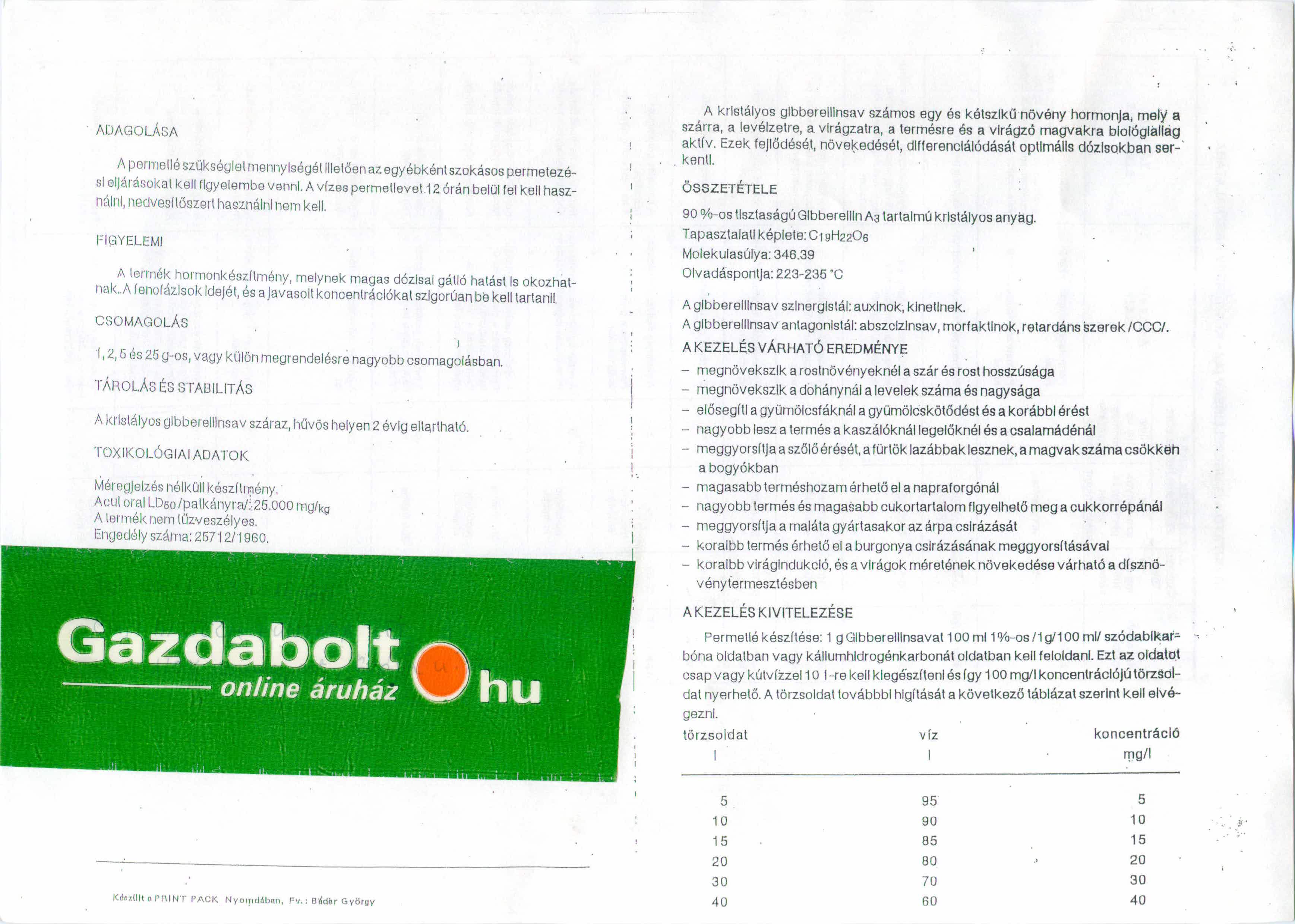 The oldest known plant hormone, discovered in Japan in 1935. It has a wide range of effects on plants, e.g. it can be used to spray rice seeds to make them grow to very large sizes, to treat citrus fruits to produce abundant flowers, etc. However, its most important property in this case is to break the dormant period of dormant seeds, encouraging them to germinate immediately. It can be used in a wide range of concentrations (ppm-part per million), depending on other applications.