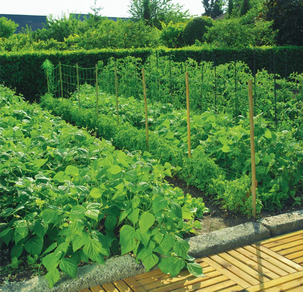 Ovdje, napeta iznad gredica, osigurava odgovarajući raspored prostora za biljke (npr. karanfil, krizantema), čime sunčeva svjetlost, navodnjavanje i zaštita biljaka mogu imati optimalnu učinkovitost.