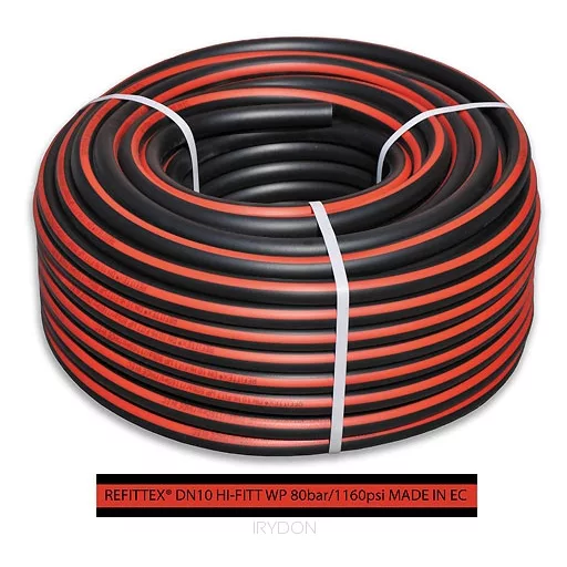 Za prijevoz zraka, vode, tekućine za prskanje, hranjive otopine pri visokim pritiscima do 80 bar / 1160 psi. Sastav: visokotlačno fleksibilno PVC crijevo s dvostrukim tekstilnim ojačavajućim slojem. Radni temperaturni raspon: -10°C - +50°C Pritisak pucanja: 240 bar.