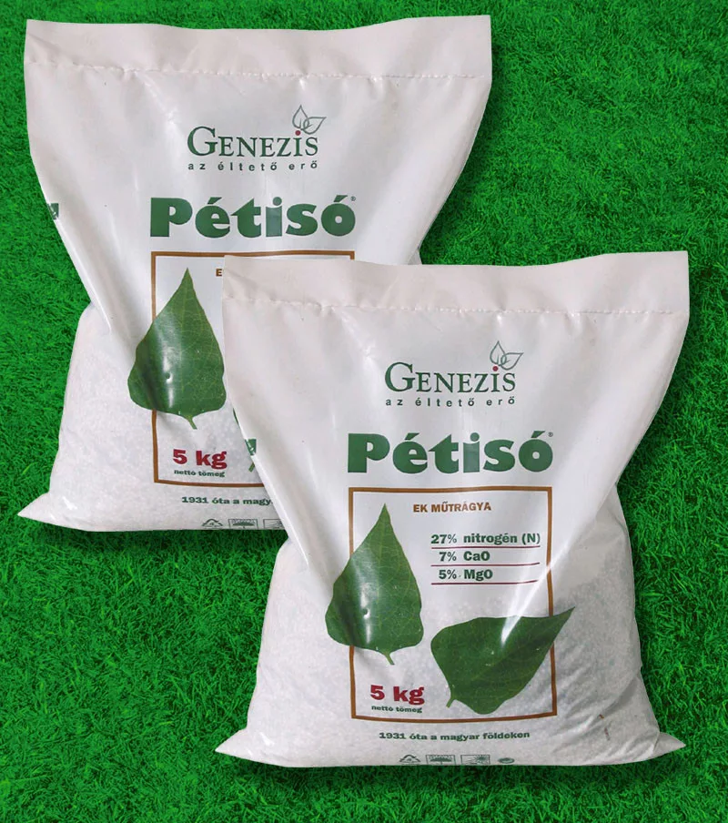 Sadržaj aktivne tvari: amonijev nitrat, dolomitni prah Prema propisima EK za gnojiva: 27 % dušika (N); 5 % kalcija (Ca), iskazano kao kalcijev oksid: 7 % CaO, 3 % magnezija (Mg), iskazano kao oksid: 5 % MgO Primjena Pétisó sadrži dušik u jednakom omjeru u sporije djelujućem amonijevom dušiku i brzo djelujućem nitratnom dušiku, stoga se može koristiti kao osnovno i prihranom gnojivo za sve tipove tla i biljnih kultura. Dolomitski sadržaj, uz dušik, smanjuje kiselost tla, pa se posebno preporučuje za obradu kiselih tala. Kalcij (magnezij) poboljšava strukturu tla, preko glineno-huminskih kompleksa čini ga mrvičastim (povećava sposobnost zadržavanja vode, topline i zraka zbog poroznosti), povećava njegovu plodnost. Poboljšanjem ionske ravnoteže povećava unos i iskoristivost ostalih hranjivih tvari. Zbog sadržaja magnezija povoljno utječe na uzgoj kultura koje zahtijevaju magnezij - krumpir, šećerna repa, trajne mahunarke, kukuruz, uljana repica, zobi, vrtne i aromatične biljke.