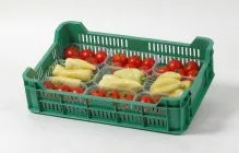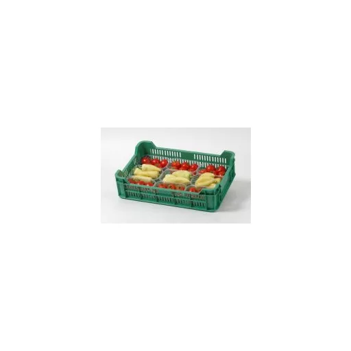 Svojstva: Vanjske dimenzije: 600x400x150 mm Tara: 1,20 kg Materijal: HDPE ili PP Maksimalna masa za utovar: 15 kg Maksimalna nosivost: 25 kg Pažnja! Slika je ilustracija, boja pregrada je crna!
