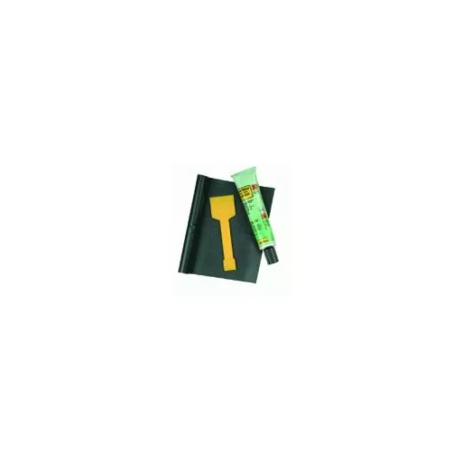Sadržaj kompleta za popravak: PVC folija za ribnjak 12,5 x 25 cm, 1 tubica ljepila za PVC foliju za ribnjak, plastična "lopatica".