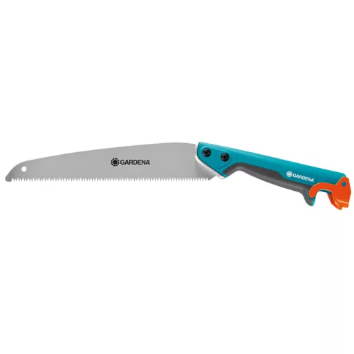 GARDENA combisystem vrtna pila s listom od 325 mm može se fleksibilno koristiti za različite vrste radova. Za piljenje lako dostupnih grana koristite vrtno pilu kao običnu ručnu pilu. Drška pile dobro leži u ruci jer je ergonomski oblikovana i opremljena udobnim, mekanim plastičnim elementima. Za više grane, do visine od 5 metara, jednostavno produljite dršku koristeći combisystem teleskopsku šipku. Praktično: jednostavno pričvrstite combisystem dršku na pilu. Sigurnosni zatvarač jamči da će veza ostati čvrsta. Za sigurno rezanje ima vrhove zuba kaljene impulsno i dvostruko brušenje. Combisystem vrtna pila izrađena je s posebnim premazom 300 PP koji pruža idealnu zaštitu protiv korozije. Savijeni oblik drške sprječava da ruka sklizne čak i pri povlačenju. Alat je opremljen otvorom za vješanje i zaštitnim pokrovom oštrice za sigurno skladištenje. Tako se pila uvijek može sigurno pohraniti. Jamstvo 25 godina.