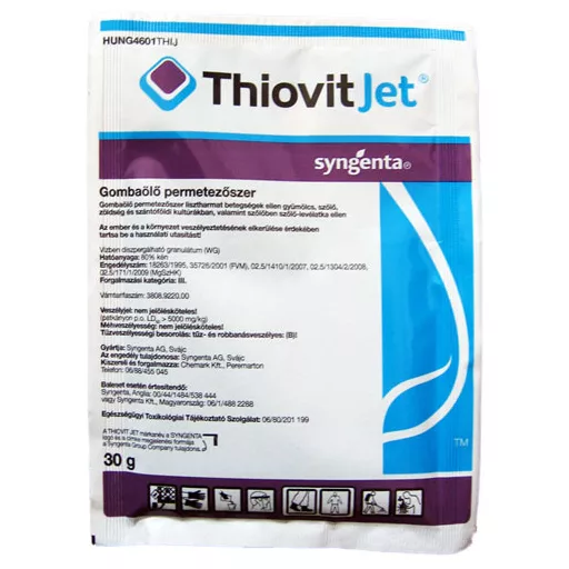 Thiovit Jet je moderna sumporna formulacija koja se lako suspendira; omjer manjih i većih čestica sumpora u prskanju je optimalan. Posljedično, učinkovitost je izvrsna, a kultura se ne ožari.