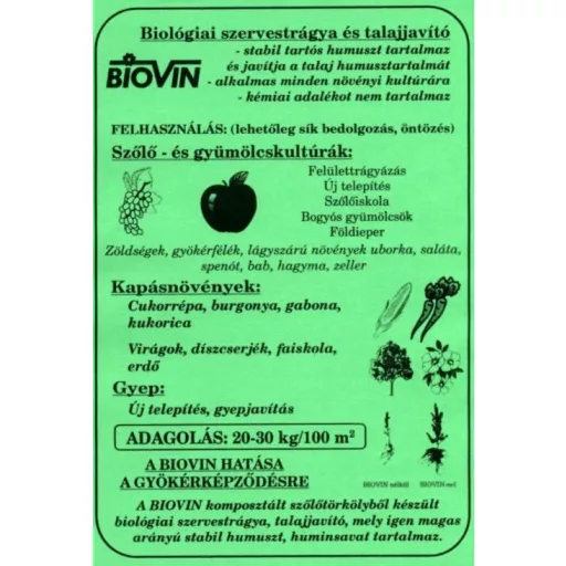 - 100 kg suhog BIOVINA jednako je 3–5 t zrelog stajskog gnoja. Prijevoz i ugradnja su lakši i jednostavniji.