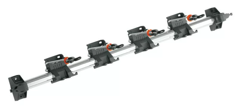 Ako svemu postoji svoje mjesto, to olakšava posao. Zidni držač alata GARDENA koristan je pomagač svima koji vole red. Držač se sastoji od aluminijske šine s držačima od plastike ojačane staklenim vlaknima, kukice su od metala s cinkovanim premazom i protivkliznim slojem, za promjer 18–40 mm. Prikladan je za prostor-štedno i lako dostupno spremanje kućanskih i vrtnih alata, combisystem alata (npr. metla, grablje, motika itd.), Original GARDENA System elemenata (npr. tušači, prskalice) i drugih dodataka (npr. škare za rezidbu). Ako želite, možete bolje kombinirati sve alate i proizvode koji su vam potrebni. Pametan je, domišljat i olakšava vrtne radove. Izvrstan sustav za pohranu vrtnih alata i pojednostavljenje vrtnih poslova. Nosivost po kuki do maksimalno 10 kg. Ukupna nosivost držača do maksimalno 60 kg. Držač alata isporučuje se s vijcima i tiplama.