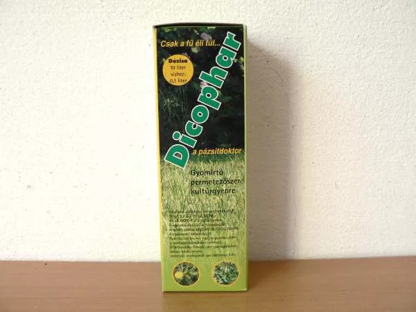 Način primjene: Sredstvo treba primijeniti nakon košnje travnjaka, kada dvozubni korovi ponovno počnu rasti, u dozi 10 l/ha (100 ml / 100 m2). Potrebna količina vode za primjenu je 10 l / 100 m2. Pri tretiranju pazite da radna otopina ne dospije na kulturne biljke jer ih trajno oštećuje. Sredstvo se može primijeniti kao plošno tretiranje ili tretiranje mrlja. U jednom vegetacijskom razdoblju mogu se izvesti najviše dva tretmana. Minimalni razmak između dvaju tretmana: 28 dana. Ne tretirajte travnjak mlađi od 6 mjeseci. Ne koristite Dicophar tijekom dugotrajne suše ili ako se očekuje oborina u roku od 6 sati nakon tretmana. Ne tretirajte odmah nakon košnje travnjaka — pričekajte nekoliko dana dok korovi ponovno ne počnu rasti. Nakon tretmana također pričekajte nekoliko dana (5 dana) prije nove košnje travnjaka. Ne koristite proizvod na livadama, poljima ili pašnjacima zbog učinka na djetelinu! Zabranjeno: uporaba na pašnjacima je zabranjena, pokošena biljka nije pogodna za ishranu životinja. Rok čekanja za sigurnost hrane: Kod pravilne uporabe nije potrebno.
