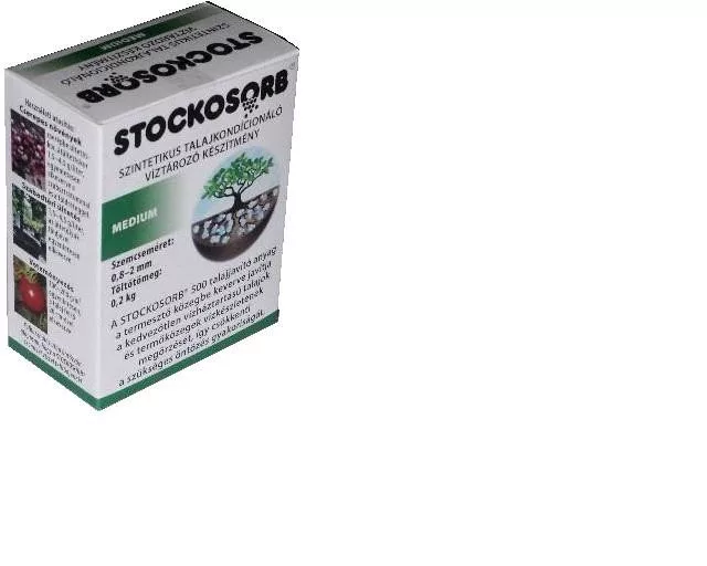 Najvažnija osobina STOCKOSORB hidrogel granulata je da pohranjuje vodu i u vodi otopljena hranjiva za biljke te pohranjenu vodu u slučaju suše ponovno ravnomjerno i u potpunosti otpušta u tlo i korijen biljke. Istaknute osobine STOCKOSORB-a: -1 kg može pohraniti 250 litara destilirane vode; -u tlu 1 kg apsorbira oko 100–150 litara vode; -maksimalna apsorpcijska učinkovitost i pri opterećenju tla; -povećava količinu pora u tlu, smanjuje eroziju; -pH neutralan, dugotrajan učinak; -nakon duljeg vremena biljka počinje venuti; -pomaže u uštedi troškova. Načini primjene: -suhi STOCKOSORB 500 medium može se rasipati ručno, rasipačem gnojiva ili prskalicom, prije sijanja ili sadnje, a zatim tlo treba orati na dubinu od 15 cm; -suhi granulat može se staviti u brazdu za sjetvu (sadnju) zajedno s gnojivom; -kao prethodno navlažujući gel: 1 kg STOCKOSORB 500 micro otopiti u 200 l vode, ostaviti da nabubri 30 minuta. Gelastu otopinu pri uobičajenoj sadnji aplicirati u rupu; -STOCKOSORB se može naknadno unijeti u tlo uz postojeću biljnu kulturu posebnom napravom. Primjenom se mogu riješiti sljedeći problemi: -sprječavanje slučajnog isušivanja; -sprječavanje oštećenja travnjaka; -poboljšanje vodnog režima, sprječavanje ispiranja hranjiva; -smanjenje ili sprječavanje šoka pri sadnji ili presadnji; -povećanje postotka nicanja; -poboljšanje strukture humusa, treseta, komposta, supstrata za cvijeće, malih vrtova i tla slabije kvalitete. Izvrsni rezultati postižu se na sljedećim područjima primjene: -uzgoj sadnica u kontejnerima, pošumljavanje; -sadnja voćaka i ukrasnog drveća u kontejnerima; -intenzivna proizvodnja ukrasnog bilja; -postavljanje travnjaka; sprječavanje isušivanja biljaka u teglama i teško održivih /zalijevanih/ ukrasnih biljaka.