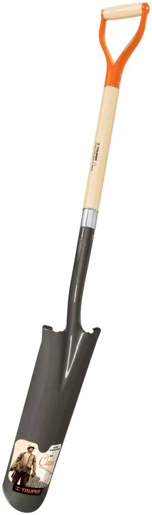 Lopata za odvodnju ili za rupe za stupove, 40,6 cm glava od toplinski obrađenog čelika, 79 cm lakirana drvena D-drška