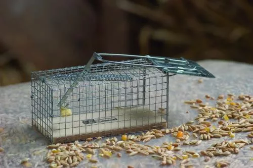 Metalni kavez s plastičnom osnovom. U otvoreni kavez štakor se ušulja za mamcem, ali ne može izići jer se vrata otvora zatvaraju pomicanjem mamca postavljenog na okidač. Uređaj živo hvata glodavca.