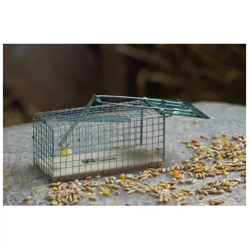 Metalni kavez na plastičnoj bazi. U otvoreni kavez štakor se popne zbog mamca, ali ne može izaći jer se vrata otvora zatvore pomakom mamca postavljenog na okidač. Uređaj živo hvata glodavca. Dimenzije 9,5 cm X 9,5 cm X 27,5 cm