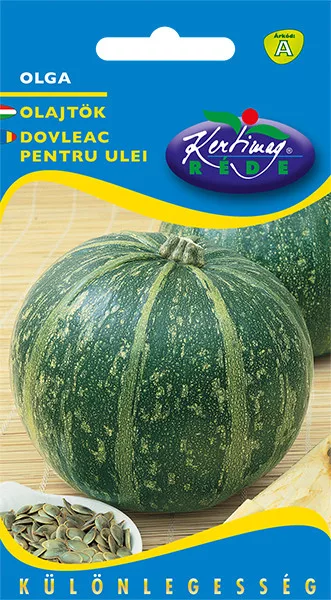 Sjeme uljne tikve bez ljuske. Polupuzavog tipa, boja ljuske žuta s blijedim prugama, površina glatka.
