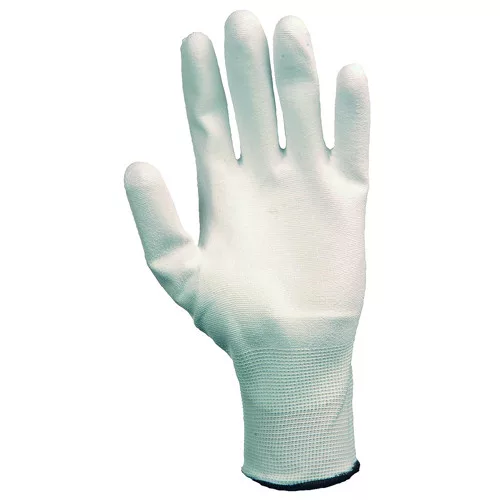 Radna zaštitna rukavica precizijska bijela, karakteristike: Materijal: pleteni, elastični, velike čvrstoće na kidanje 100% poliamidna vlakna Dostupne veličine: 7,8,9,10 Udobnost: -dlan obložen bijelim poliuretanom, bijela precizijska rukavica s gumiranim manšetom, sze...
