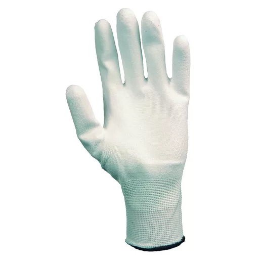 Precizne bijele zaštitne radne rukavice, karakteristike: Materijal: pleteno, elastično, s velikom čvrstoćom na kidanje, 100% poliamidna vlakna Dostupne veličine: 7,8,9,10 Udobnost: -dlan premazan bijelim poliuretanom, bijela precizna rukavica s gumiranim manžetom, sze...