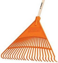 Plastična metla za lišće (NARANČASTA), s drvenom drškom, glava široka 56 cm, 22-kraka, može se pričvrstiti vijkom za drvo