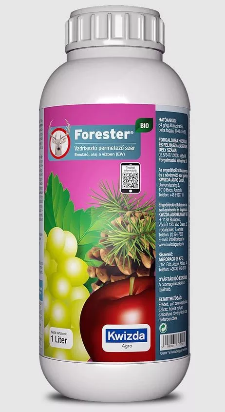 MEHANIZAM DJELOVANJA Forester® EW sredstvo za odbijanje divljači primjenjuje se protiv grizenja srne, jelena i muflona u šumskim i voćnim kulturama. Aktivna tvar na bazi životinjskih masti razvijena je na temelju opažanja u prirodi, a upotrebom se mogu zaštititi različite šumske i voćne kulture od grizenja velike divljači. Proizvod izaziva odbijajući učinak svojom neugodnom mirisom za životinje. Nakon tretmana zaštićeno područje treba ostaviti da se raspršena otopina osuši kako bi se osigurala dugotrajnost učinka, stoga tretman provodite u suhom vremenu. U maglovitom ili kišnom vremenu tretman se ne smije izvoditi jer se tada ne može stvoriti zaštitni, osušeni sloj na biljci.