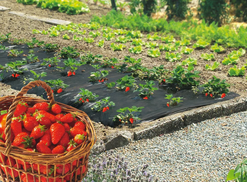 Folija za prekrivanje tla za jagode. Sprječava rast korova, povećava prinos. Sprečava zaprljanje plodova.
