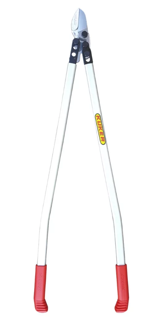 Kuker PR/100 škare za grane Proizvođač je od 1988. kontinuirano usavršavao dijelove ovih škara. Zahvaljujući prijenosu s valjcima, možemo odrezati i grane promjera do 5 cm. Ručke su podesive po udaljenosti, što značajno produljuje vijek trajanja aluminijske potporne oštrice...