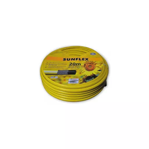 3-slojno crijevo s tkaninskim uloškom. I sloj: crni PVC, otporan na UV i na alge. II sloj: mrežasti pleteni sloj od sintetičkih vlakana. III sloj: mekani PVC žute boje