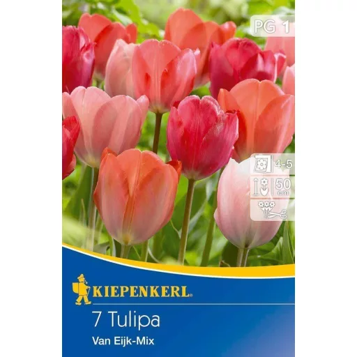 Kiepenkerl Darwin-hibrid tulipan VAN EIJK pouzdan je sorta snažnog rasta koja od ranog srednjeg proljeća donosi velike, elegantne cvjetove. VAN EIJK, koji spada među Darwin-hibride, posebno je cijenjen zbog stabilnog cvjetnog stabljike, ujednačenog oblika cvijeta i dekorativnog, urednog izgleda. Pakiranje sadrži 5 pažljivo odabranih lukovica koje se uz pravilno sadnju mogu vraćati u vrtu nekoliko godina.