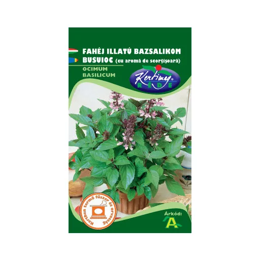 Bosiljak s mirisom cimeta jednogodišnja je biljka visine 40-50 cm, dekorativna, voli toplinu i svjetlost. Listovi su srednje veličine, cvjetovi ružičasti. Izvrsne arome, cijela biljka miriši na cimet.