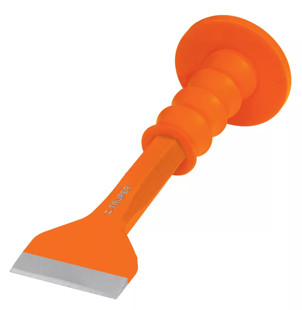 Kaljeni, ojačani rezni rub za dugotrajnost, kovan iz jednog komada krom-vanadija. Lako udariva proširena glava. Opremljen drškom za smanjenje vibracija.