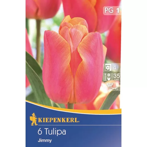 Svojstva tulipana Jimmy: Veličina lukovice: 11/12 Visina biljke: 35 cm Razdoblje cvatnje: Cvjeta u travnju. Za rezano cvijeće: Da