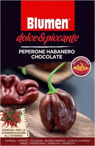Čokoladna habanero paprika – ekstremno ljuta. Vrlo otporna sorta. Plod naraste 2–8 cm. Može se sijati i u posudi. Traži sunce. Preporučena temperatura sjetve: 20/30 °C. Može se sijati na otvorenom i u plasteniku. Razmak između biljaka 40 cm, sijati na dubinu 1 cm. Dvostruka zaštita...