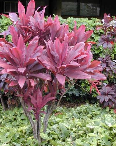 Ovo je vrlo popularna sorta Cordylinea. Rast joj je nešto sporiji nego kod zelenog oblika; zimzelena je, slabo razgranata biljka čiji su listovi debeli, intenzivno bordo boje, otporni na opekline, dugi 1–1,5 m i snažni. Mali mirisni cvjetovi cvjetaju u velikim metlicama ljeti. Ova vrsta Cordylinea voli tropsku, vlažnu klimu, pa to treba uzeti u obzir ako želimo uživati u njenom prekrasnom izgledu godinama.