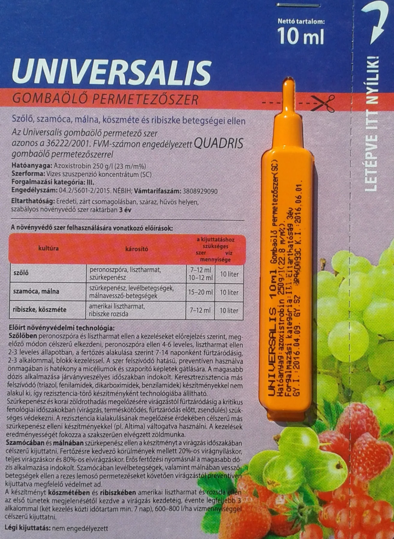 Universalis fungicid je isti kao i fungicid Quadris odobren pod brojem 36222/2001.FVM.