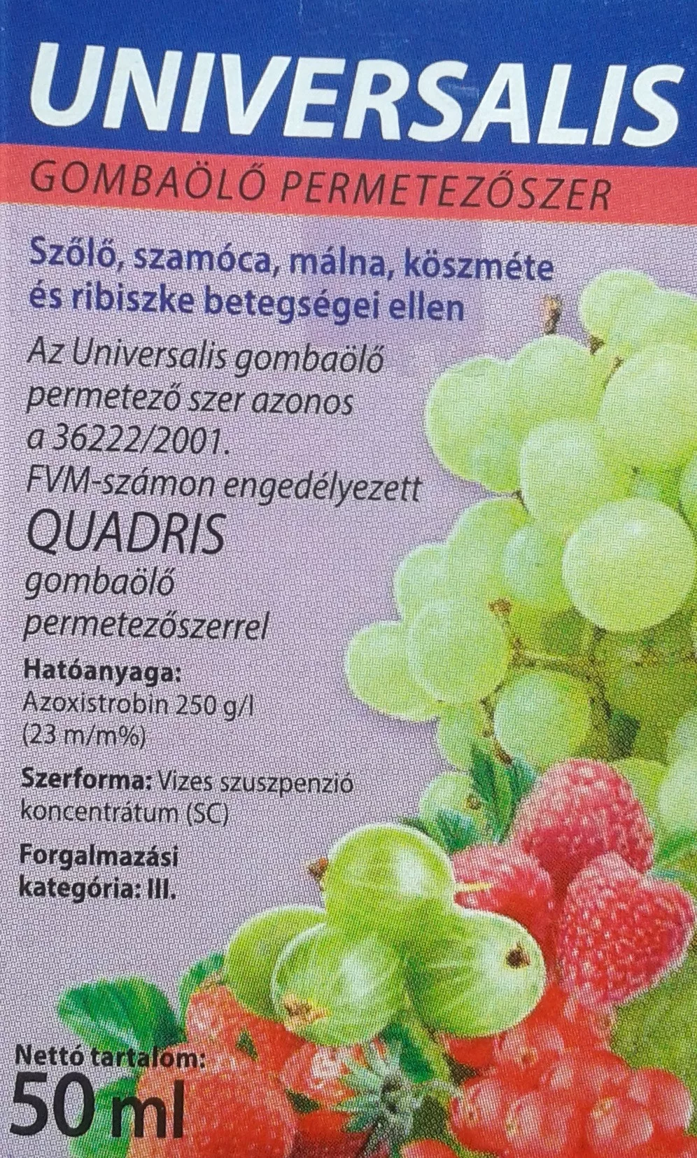 Sredstvo za prskanje protiv gljivica Universalis isto je kao i fungicid Quadris odobren pod brojem 36222/2001.FVM.