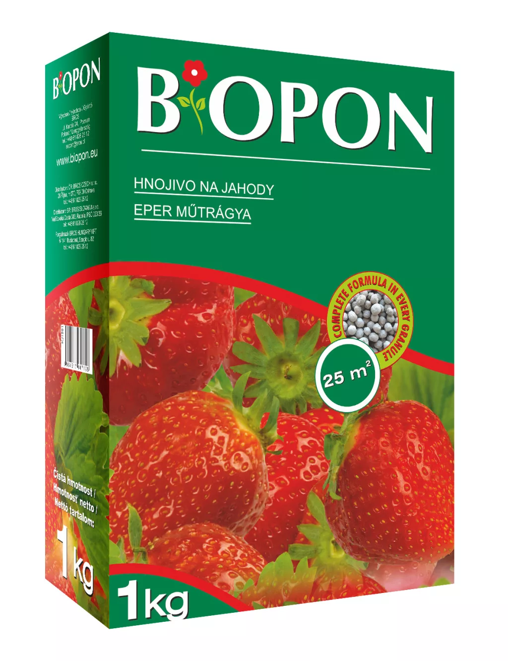 Višekomponentno granulirano gnojivo za vrtne i šumske jagode. Pravilni omjer sastojaka pojačava cvatnju i potiče dugotrajan prinos plodova. Doza: 1 kg/25 m²