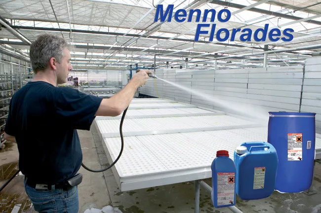 Za dezinfekciju alata, noževa, staklenika i folijskih plastenika! Menno Florades je potpuno novi, učinkovit proizvod protiv gljivica, bakterija i VIRUSA! Ne ispušta plinove, ekološki je prihvatljiv. Počnite s čišćenjem i dezinfekcijom prije nove kulture pomoću Menno Floradesa. Primjenjivati u koncentraciji 1–1,5 %.