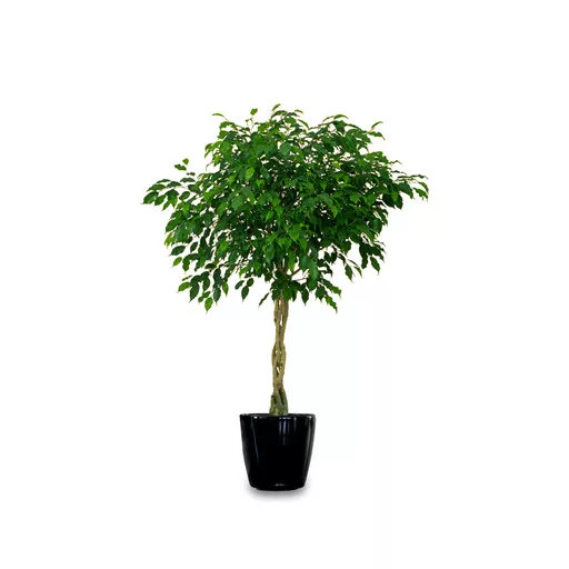 U našoj zemlji također vrlo popularna, dekorativna i lako održiva, brzo rastuća ukrasna biljka. Budući da je tropska vrsta, zimi se mora držati u stanu. Ima male sjajne zelene listove. Poznato je više varijeteta Ficus benjamina. Dostupni su u mnogim varijacijama, ne samo u boji listova već i u obliku. Razmnožavanjem iz sjemena pruža se mogućnost da biljku oblikujemo kako želimo. Orezivanjem ili pletenjem stabalce se može oblikovati, čime se postiže iznenađujuće snažan dekorativni učinak. Biljka iz oštećenih dijelova luči bijelu tekućinu.