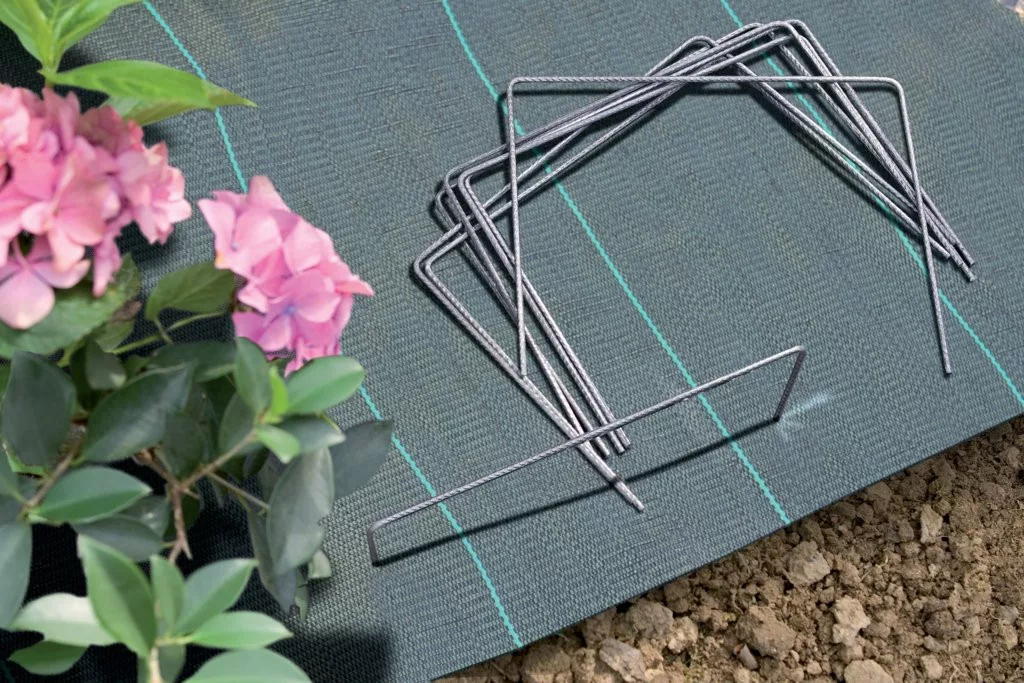 Metalni zabijač u obliku kopče. Za pričvršćivanje folija za pokrivanje tla, malč folija i mreža protiv krtica za tlo.