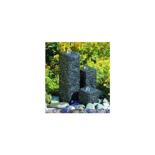Set fontana Modena. Set fontane Sadržaj seta: Modena kalup 3 kom Materijal Granit Dimenzije 15/30/45 x 12 x 12 cm Pumpa 1600 l/h Rasvjeta LED Zapremina spremnika 90 l Kao i cijevi i priključci za ugradnju: 68 x H36 cm.
