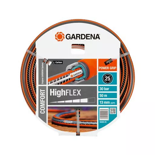 GARDENA Comfort HighFLEX crijevo s Power Grip rebrima osigurava savršeno prianjanje između crijeva i priključka. Zahvaljujući novoj tehnologiji uklapaju se poput zupčanika. Power Grip rebrima ostvaruje se stara želja mnogih vrtlara: pouzdana veza s izvrsnom nosivošću. Rebrasta površina dodatno olakšava namotavanje crijeva i dobro klizi. Zbog guste, visokokvalitetne spiralne mrežaste tkanine u kojoj se dvije spiralne niti kreću u suprotnim smjerovima, crijevo je otporno na tlak i zadržava oblik, a pritom je znatno fleksibilnije u uporabi nego Comfort FLEX crijevo. To je zasluga gustoće spirala koja crijevo čini još fleksibilnijim i lakšim za rukovanje. Crijevo se ne zapetljava niti uvija. Sve to pruža najbolje preduvjete za jednostavnu i svestranu uporabu u vrtu. Po potrebi izvrsno se koristi s originalnim GARDENA System priključcima i zalijevnim priborom. Ne sadrži štetne omekšivače (ftalate) ni teške metale i naravno otporno je na UV-zračenje. Debeli zid posebno ga čini robusnim i izdržljivim. 30 bar granični tlak. 25 godina jamstva.
