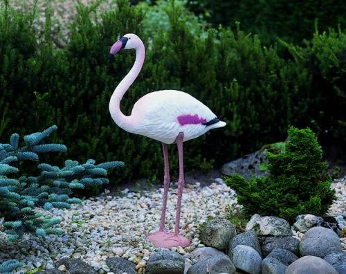 Životinjska figura, Flamingo, 90 cm, s okruglim postoljem Nisu svim umjetno stvorenim jezercima ili vrtovima suđene žive prave patke, labudovi i druge kopnene ili vodene životinje. Ako želite unijeti malo života u svoje jezerce ili vrt, iz našeg širokog asortimana možete birati iz kolekcije imitacija vodenih i vrtnih životinja. Naši realistično dekorativni proizvodi unijet će malo boje i života u jezero.