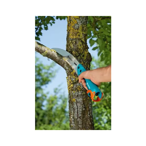 Zakrivljena GARDENA combisystem vrtna pila s listom dužine 300 mm fleksibilna je za razne vrste poslova. Za piljenje lako dostupnih grana koristite vrtu pilu kao „normalnu” ručnu pilu. Drška pile leži dobro u ruci zahvaljujući ergonomskom dizajnu s ugodnim, mekim plastičnim elementima. Za više smještene grane jednostavno produljite dršku do visine do 5 metara koristeći combisystem teleskopsku držku. Praktično: jednostavno pričvrstite combisystem dršku na pilu. Sigurnosna kopča osigurava stabilnu vezu. Za sigurno rezanje ima impulzno otvrdnute zube i trostruko brušenje. Zakrivljena combisystem vrtna pila 300 P izrađena je s posebnim premazom koji pruža idealnu zaštitu protiv korozije. Povratni oblik drške sprječava klizanje iz ruke čak i pri povlačenju. Odrezane grane lako se skidaju kukom na kraju zakrivljenog lista. Alat je opremljen otvorom za vješanje i zaštitnim rubom za sigurno skladištenje. Tako je pila uvijek sigurno pohranjena. Jamstvo traje 25 godina.