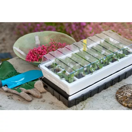 Fleksibilni plastični pladanj, jedan stiroporni (hungarocell) pladanj s 24 ćelije (4 reda po 6 ćelija), kapilarna tkanina i prozirni poklopac.