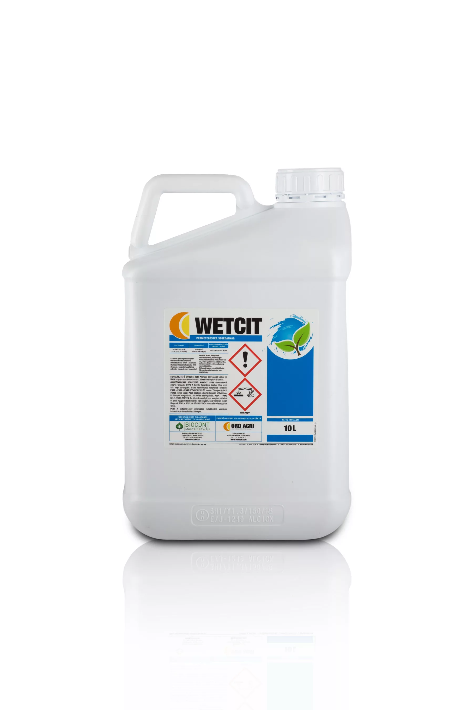 WETCIT® je adjuvant potpuno novog aktivnog sastojka i mehanizma djelovanja. Njegovi sastojci osiguravaju izvanredno ovlaživanje, prianjanje i penetraciju radne suspenzije zahvaljujući aktivnom sastojku alkohol-etoksilatu i dodatku hladno prešanog narančinog ulja. Narančino ulje ima važne pozitivne osobine drugih ulja, poput sposobnosti prodiranja kroz vodoodbojni biljni sloj voska, ali ne stvara uljni film koji bi sprječavao disanje biljke na listovima i plodovima, te stoga ne izaziva dugotrajan stres kod tretiranih biljaka. Istovremeno djeluje dehidraciono na štetnike s mekšim hitinskim oklopom (npr. miceliji gljiva, mekani štetnici), što značajno povećava učinkovitost pridruženih zaštitnih sredstava. Aktivni sastojak alkohol-etoksilat odgovoran je za jedinstveno širenje i ovlaživanje radne suspenzije čak i pri vrlo malim koncentracijama (0,15%). Zbog ovih složenih svojstava možemo sa sigurnošću tvrditi da WETCIT® samostalno obavlja poslove različitih tipova i funkcija adjuvansa.