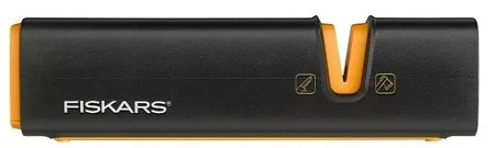 Fiskars Xsharp™ može biti neprocjenjiv dodatak radionici. Lako se nosi i mogu ga koristiti i dešnjaci i ljevaci. Jednostavan mehanizam rukovanja i nazubljeni keramički kamen za oštrenje osiguravaju optimalnu oštrinu i time dug vijek sjekire ili noža.