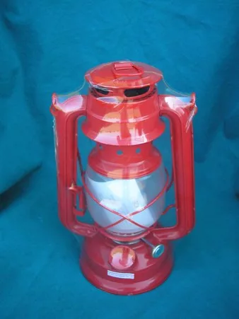 olujska svjetiljka, metalna, sa staklom, crvene boje