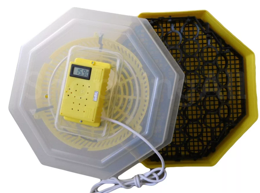 Tehnički podaci: Temperatura je podesiva, ima higrometar, pribor uključuje rotirajuću rešetku (za kokošja jaja)