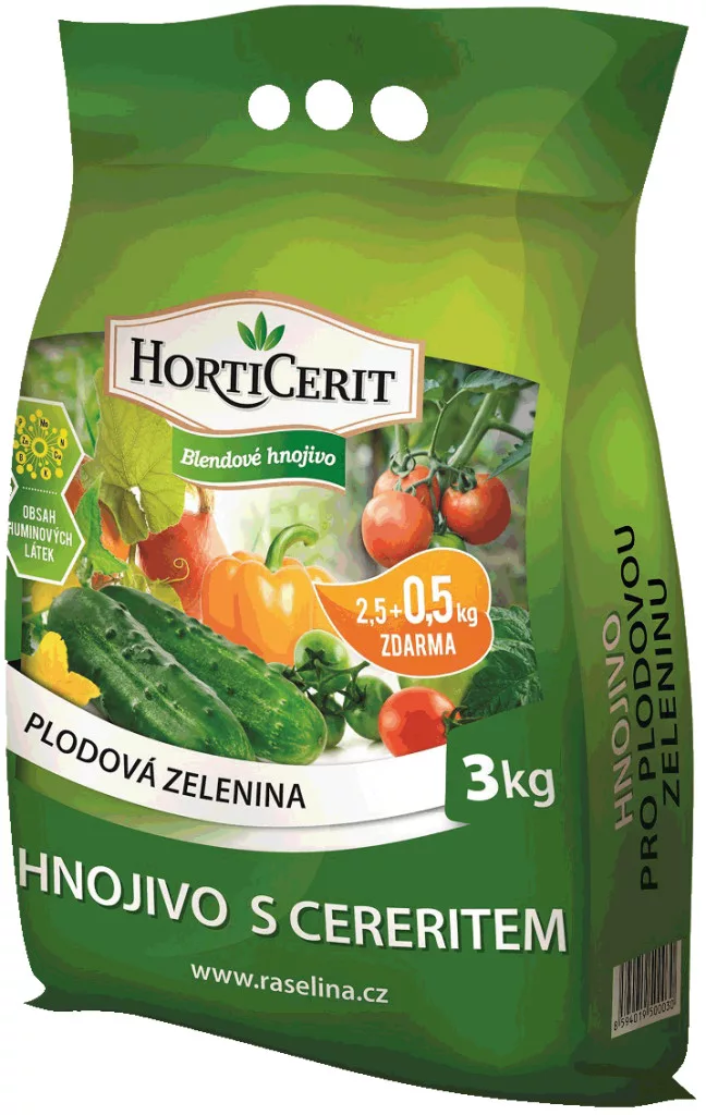 Horticerit - gnojivo se primjenjuje za prihranu prije sadnje za osnovno gnojenje, ali i za prihranjivanje tijekom vegetacije biljaka. Gnojivo je namijenjeno uzgoju plodonosnih povrtlarskih kultura (rajčica, paprika, krastavac, tikvica, bundeva itd.) na otvorenim gredicama, u staklenicima i pokrivačima.