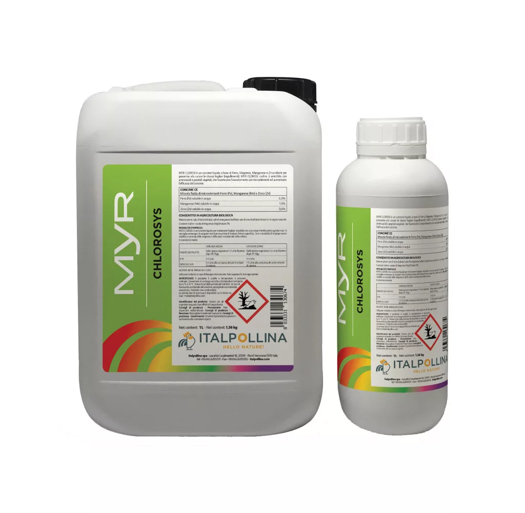 Kompleksno djelujuće listno gnojivo za prevenciju i liječenje klorotičnih simptoma. Zbog složenog sadržaja mikroelemenata MYR Chlorosys poboljšava otpornost na hladnoću, potiče proces fotosinteze u biljci i povećava udio šećera u plodu.