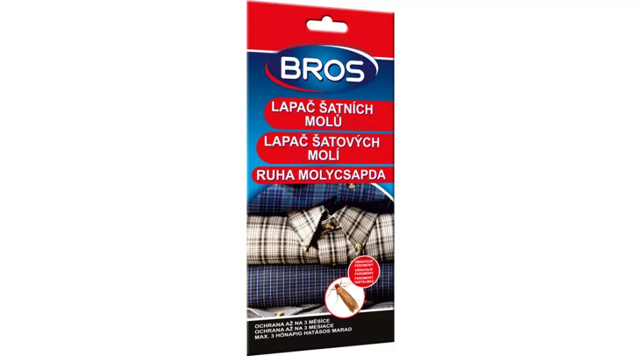 Bros zamka za moljce odjeće. Bez mirisa, može se staviti u ladicu ili ormar. Feromonska površina. Maks. 3 mjeseca djelovanja. Ne sadrži kemijski insekticid.