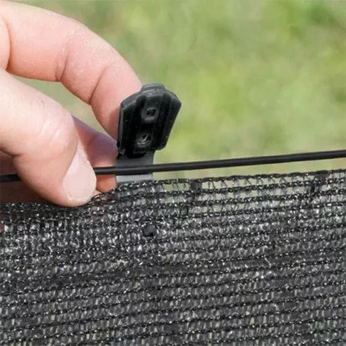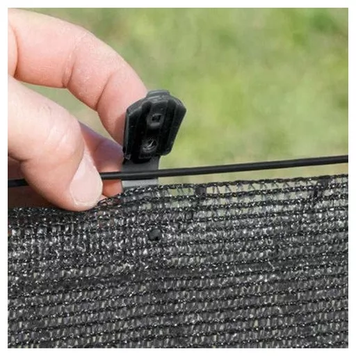Kopča za pričvršćivanje za pletene ogradne mreže i mreže za zasjenjivanje. Diskretno, jednostavno i učinkovito rješenje.