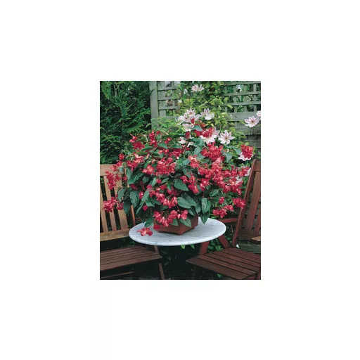 Begonia (Dragon Wings) crvena: Ime je dobila po listu u obliku zmajevih krila. Posebno je otporna sorta. Cvjeta kontinuirano. Do kraja ljeta naraste u veliki grm. Ovu sortu umjerenih zahtjeva za hranjivima sadimo na polusjenovito mjesto i pazimo na zalijevanje jer je osjetljiva na prekomjerno zalijevanje.